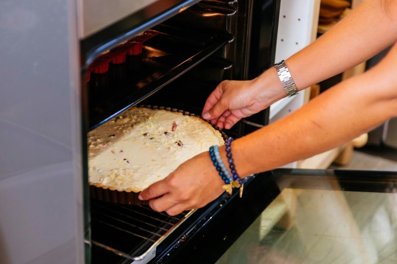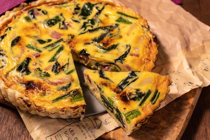 キッシュは、土台となる生地を小麦粉、オリーブオイル等を合わせ作り、アパレイユを流し焼き上げております。